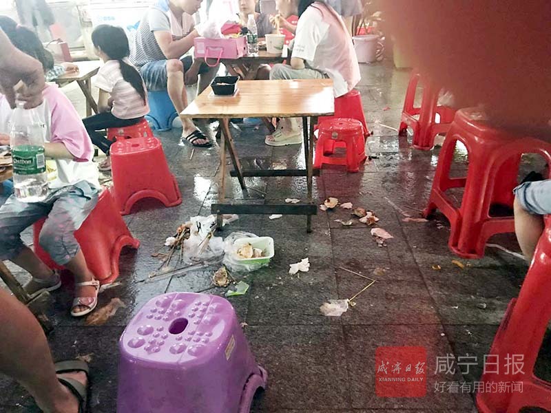 然而,記者在廣場(chǎng)走了一圈發(fā)現(xiàn),臟污藏在小吃攤角落里,藏于餐桌底下,藏在食客腳邊。