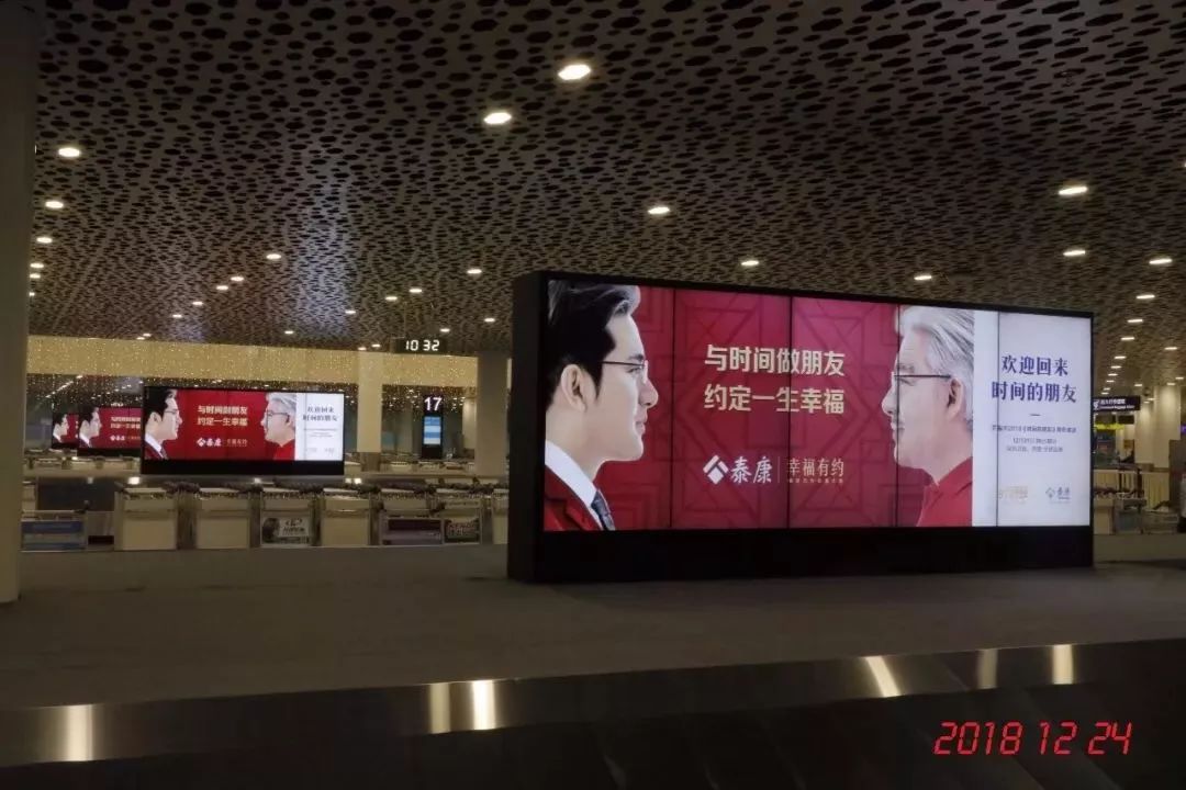 全年4500萬(wàn)左右人次的旅客吞吐量,跨年期間約500萬(wàn)人次的高峰接待量,18塊屏幕36面同時(shí)呈現(xiàn),每天480次,24小時(shí)滾動(dòng)播放。在深圳寶安國(guó)際機(jī)場(chǎng),數(shù)千萬(wàn)人流共同感受泰康的品牌風(fēng)采。
