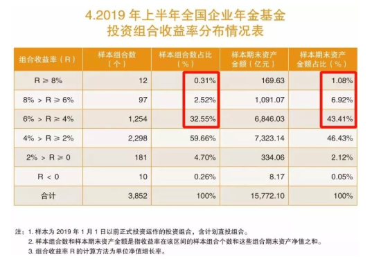 從總體業(yè)績來看,2019年上半年全國企業(yè)年金基金投資收益為606.28億元,加權(quán)平均收益率為4.10%。相比2018年上半年,企業(yè)年金基金的加權(quán)平均收益率為1.22%,表現(xiàn)不俗。