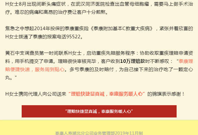 [【泰康人壽】湖北泰康重疾先賠十月報(bào)