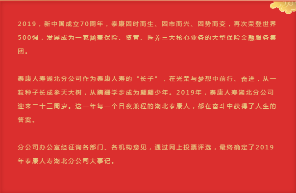 【泰康人壽】2019年泰康人壽湖北分公司大事記新鮮出爐