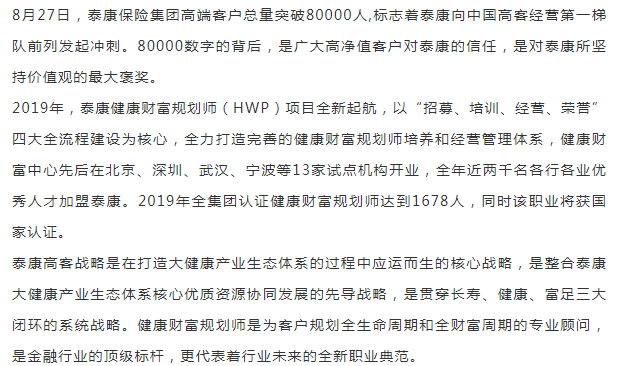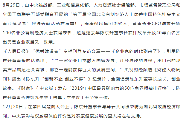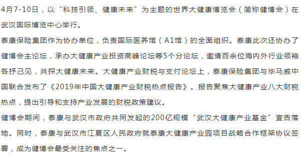 【泰康人壽】2019年泰康保險集團(tuán)大事記