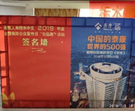 今年是“開頭難”的一年,突如其來的疫情席卷了湖北大地,也勾起了湖北保險從業(yè)者的責(zé)任感和使命感。在黨的精神和指示引導(dǎo)下,湖北泰康挺身而出,在每一個關(guān)鍵的節(jié)點,身體力行履行著“尊重生命、關(guān)愛生命、禮贊生命”的價值觀。后疫情時期,以習(xí)近平新時代中國特色社會主義思想為指引,為深入貫徹落實新發(fā)展理念,進一步強化保險行業(yè)的公眾宣傳意識,推動保險行業(yè)形象持續(xù)改善和全社會保險意識不斷提高,按照中國銀保監(jiān)會和中國保險協(xié)會的要求,6月24日,泰康人壽湖北分公司全面啟動2020年“7.8全國保險公眾宣傳日”活動。 泰康人壽湖北分公司將緊緊圍繞“同心同行,我們在一起”這一活動主題,積極組織下轄機構(gòu)開展“7.8保險扶貧健康操”、“一起增強免疫力動7來8”話題短視頻推廣傳播、“同心同行,我們在一起”短視頻拍攝、“保險科技五進入”等一系列百花齊放的保險宣傳活動。 ●●● 目前,泰康人壽湖北分公司已在16家中支機構(gòu)各分支機構(gòu)統(tǒng)一部署,利用條幅、海報、LED屏展示等形式營造活動氛圍。7月8日當(dāng)天,全轄各機構(gòu)將積極組織豐富多彩的線上活動,深化與公眾的互動,宣傳保險知識理念,攜手攻堅克難,共創(chuàng)美好生活。 2019年7.8保險公眾宣傳日湖北分公司的宣傳活動 ●●● 泰康人壽湖北分公司將充分利用線上平臺和公司自媒體,普及保險知識、傾聽公眾心聲、提升服務(wù)品質(zhì)、塑造行業(yè)形象。持續(xù)不斷動員全公司力量參與各項活動,在后疫情時代與公眾進行溝通互動,擴大主題活動的影響力,樹立行業(yè)品牌,展示保險行業(yè)履行社會責(zé)任、服務(wù)民生、共克時艱的良好形象。