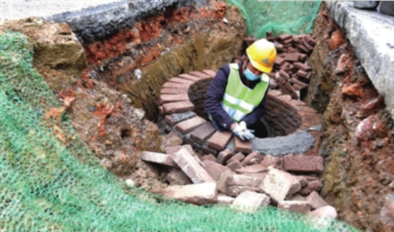 4月17日,咸安區(qū)溫泉街道筆架山街小微積水點(diǎn)整治現(xiàn)場,工作人員正在修建下水管道。