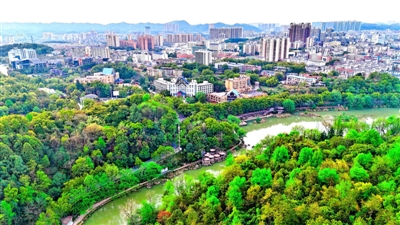 近日,無人機(jī)拍攝的咸寧城區(qū),一半山水一半城,山水相融城如畫。