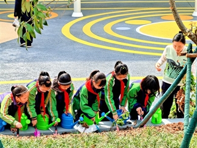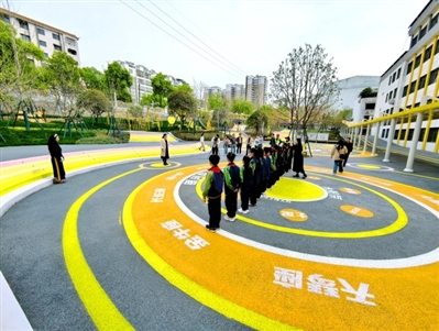 記者看到,護學連廊為孩子們的上學路保駕護航;籃球場、滑滑梯、秋千等游樂設施滿足孩子們的運動與玩耍需求,促進身體發(fā)育;互動游樂設施和樂器激發(fā)孩子們的創(chuàng)造力與藝術興趣;昆蟲屋、生物認知牌和花草牌讓孩子們親近自然、探索生命奧秘;鳥屋增添靈動與和諧,營造生態(tài)友好氛圍。