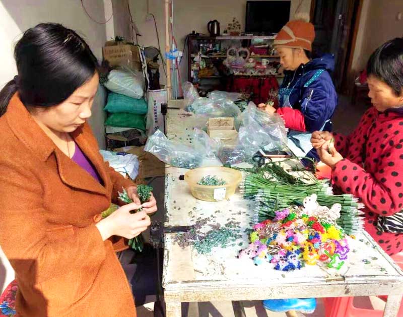 為了生存,丈夫選擇長年在外務(wù)工,18歲的女兒上了高中,早年在外闖蕩做過手工雕刻、生產(chǎn)代加工的祝桂蘭,一個人在家里悶得慌,看著同樣貧窮又無所事事的鄉(xiāng)親,總想用自己的特長為鄉(xiāng)親們做點什么。