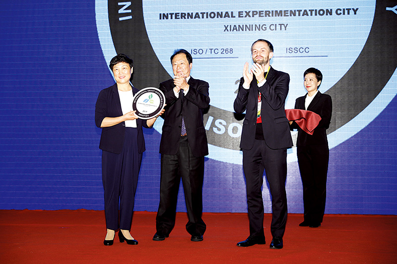 ISO/TC268秘書長埃蒂安·卡約、省市場監(jiān)管局副局長詹永杰為咸寧“城市可持續(xù)發(fā)展國際標(biāo)準(zhǔn)試點城市”授牌