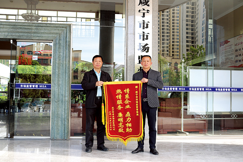 2019年4月16日,咸寧幸樂食品有限公司(王子蛋糕)董事長劉克勇將一面錦旗送到市市場監(jiān)管局,對該局的真誠、貼心、快捷服務(wù)表示衷心的感謝。錦旗上寫著:“情系企業(yè) 鼎力相助;熱情服務(wù) 廉明高效”。