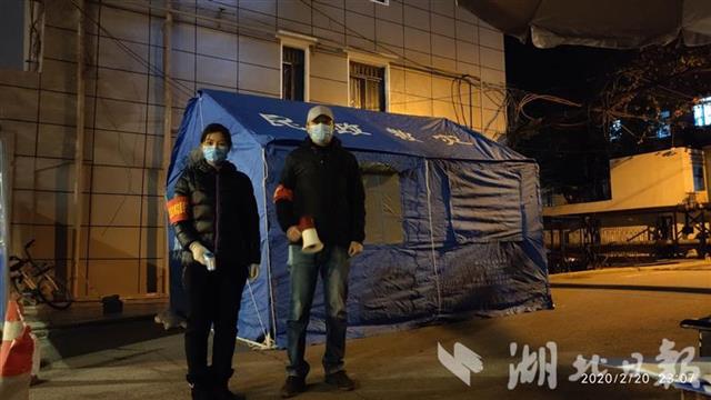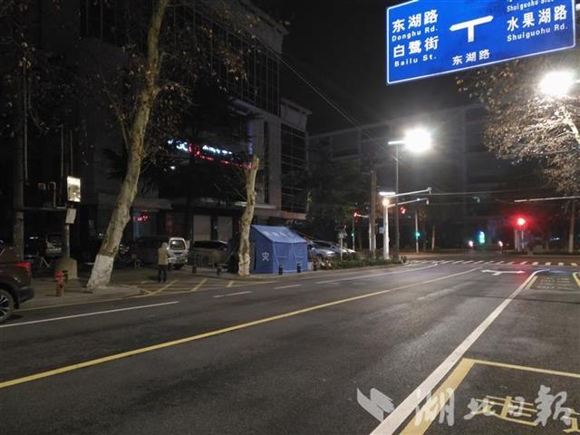 另外,東湖路上也有兩處值守點(diǎn),分別設(shè)在水果湖一中宿舍門口、水果湖二小宿舍門口;白鷺街上還有一處,即紅軍村小區(qū)出入口。深夜時分,“北環(huán)一線黨員防守微信群”很熱鬧,值守人員紛紛發(fā)來到崗圖片,記者一一實(shí)地探訪,這三處均有人值守。