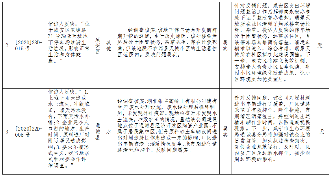 2020年12月28日,省第二生態(tài)環(huán)境保護(hù)督察組交辦咸寧市第二批生態(tài)環(huán)境問(wèn)題3件(見(jiàn)附表)。我市高度重視,及時(shí)分辦至相關(guān)縣(市、區(qū))、部門進(jìn)行處理?,F(xiàn)按要求向社會(huì)公開(kāi)。