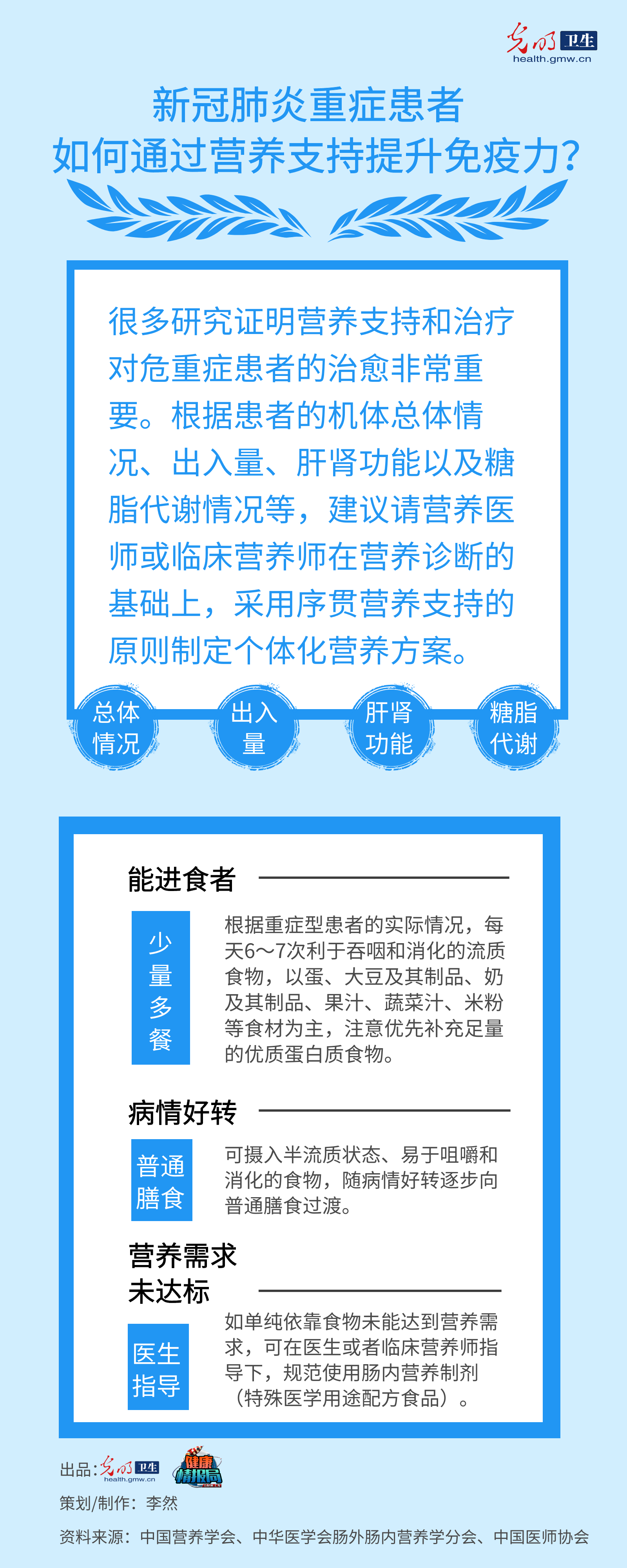 【一圖讀懂】新冠肺炎重癥患者如何通過營養(yǎng)支持提升免疫力