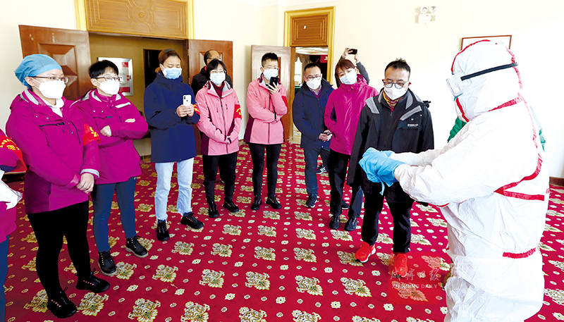早上的咸寧,一縷暖陽射進(jìn)屋子,醫(yī)療隊(duì)感染性疾病科的護(hù)士曾珍給我們上了一堂專業(yè)的防護(hù)課。從戴兩層口罩、戴兩個(gè)手套、穿防護(hù)服、隔離服,到套腳套和帶護(hù)目鏡。一套服裝穿下來,曾珍整整用了12分鐘的時(shí)間。“穿還容易,脫是最艱難的?!痹湔f。正好培訓(xùn)時(shí),埠外醫(yī)院的幾位醫(yī)護(hù)人員也來一起交流學(xué)習(xí),一套裹得嚴(yán)嚴(yán)實(shí)實(shí)的衣服,曾珍脫下來時(shí),又花了20分鐘。等曾珍摘下口罩時(shí),記者才發(fā)現(xiàn),她臉上已經(jīng)有明顯的勒痕,我無法想象,在這樣一個(gè)完全封閉的狀態(tài)下還要工作會(huì)是什么感受?曾珍說,她們的極限是4個(gè)小時(shí),但是真正工作起來,往往遠(yuǎn)不止4個(gè)小時(shí),也就是說,在大疫面前,我們?cè)S多醫(yī)生一直在做著“超越極限”的工作。