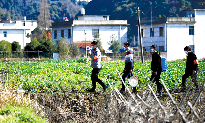 “防疫情、少出門、先報備、找村委……”2月12日下午,咸安區(qū)馬橋鎮(zhèn)曾鋪村工作人員不間斷地用“小喇叭”在田間地頭開展防控宣傳。