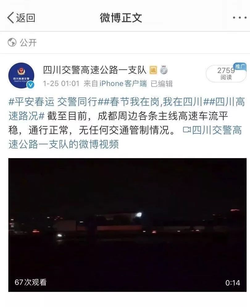 在網(wǎng)絡(luò)上流傳著各種關(guān)于四川高速封路的消息,1月25日,四川省交通運輸廳高速公路管理局官方微博“四川高速”、成都交通運輸官方微博分別發(fā)布消息:周邊各條高速公路通行正常。