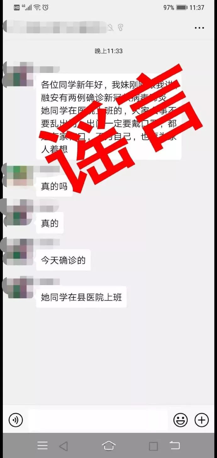 25日午間,融安縣網(wǎng)信辦在網(wǎng)絡(luò)巡查中發(fā)現(xiàn),有個(gè)別網(wǎng)民在網(wǎng)上發(fā)布與“新型冠狀病毒肺炎”有關(guān)的謠言信息,此類謠言在網(wǎng)絡(luò)上引發(fā)了眾多群眾的關(guān)注和討論。融安縣公安局網(wǎng)安部門根據(jù)巡查信息迅速展開(kāi)核查,查明違法嫌疑人為羅某會(huì)(男,43歲,融安縣長(zhǎng)安鎮(zhèn)人)、吳某強(qiáng)(男,38歲,融安縣長(zhǎng)安鎮(zhèn)人)。當(dāng)日下午,融安縣公安局長(zhǎng)安派出所民警到羅某會(huì)、吳某強(qiáng)家中,依法將兩人傳喚至公安機(jī)關(guān)進(jìn)行調(diào)查。