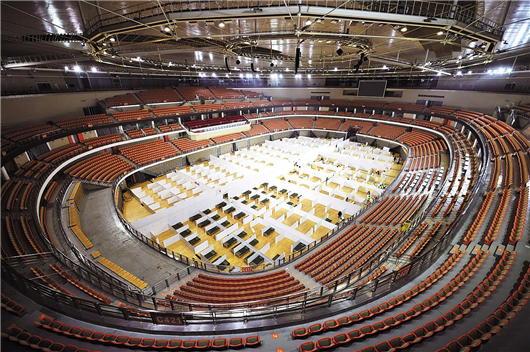 2月4日下午,位于漢口解放大道612號的武漢體育館外,消殺車輛、運送車輛接連駛來。4點半,場館內(nèi)騰退清理干凈,各單位工作人員陸續(xù)進場,60多名環(huán)衛(wèi)工人緊張有序地搬運折疊床、鋪好被褥。5日上午,經(jīng)過工作人員現(xiàn)場測試和檢查,通信保障滿足容量需求,供電穩(wěn)定可靠。