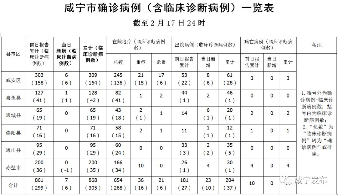 咸寧新增9例(含臨床診斷病例4例),累計861例,新增病亡2例!