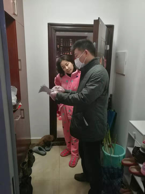 不等全市的志愿者任務(wù)分派下來(lái),單位包保的小區(qū)已經(jīng)告急,周煒二話不說(shuō),立刻投入到市國(guó)資委所屬的國(guó)資中心包保的金葉小區(qū)疫情防控工作中。金葉小區(qū)共有住房461戶,居住人口1963人,春節(jié)返鄉(xiāng)人員107人,其中武漢返鄉(xiāng)人員就多達(dá)46人,防控疫情的任務(wù)十分嚴(yán)峻。摸排走訪、出入登記、問(wèn)詢宣傳、體溫測(cè)量、噴灑消毒,服務(wù)孤寡.......細(xì)致而繁瑣地工作,日復(fù)一日地堅(jiān)持,小區(qū)住戶看在眼里,支持配合在行動(dòng)上,幾天下來(lái),近兩千人的小區(qū)無(wú)一例確診、疑似或被觀察人員。市電視臺(tái)聽(tīng)聞后,專門前往進(jìn)行了專題宣傳采訪。