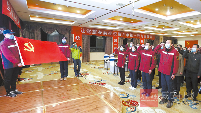 在咸寧市,云南省援助湖北省醫(yī)療隊(duì)臨時(shí)黨委組織疫情防控一線第一批發(fā)展黨員進(jìn)行入黨宣誓儀式。