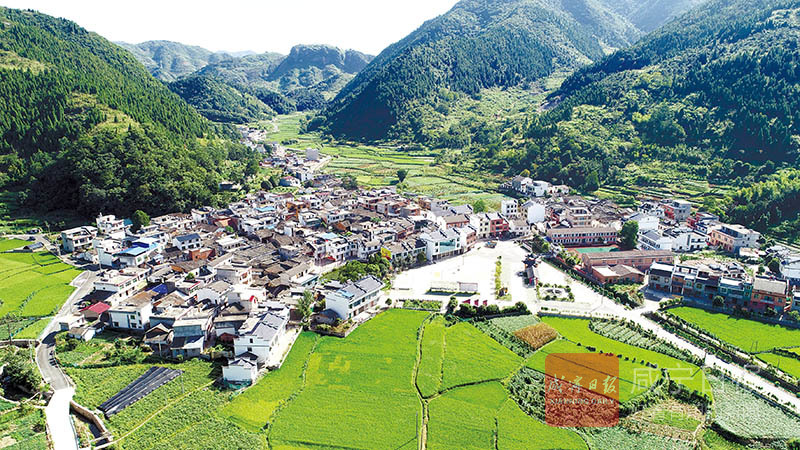 15日,無人機鏡頭中的通山縣大畈鎮(zhèn)西泉村西泉畈自然灣,古民居與徽派建筑鑲嵌在綠油油的山水間,儼然一幅當代版的世外桃源。