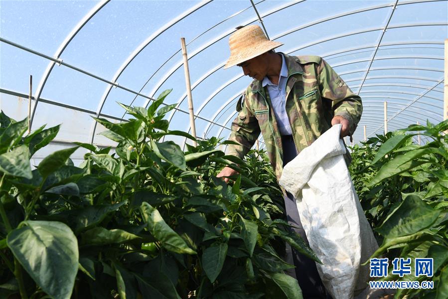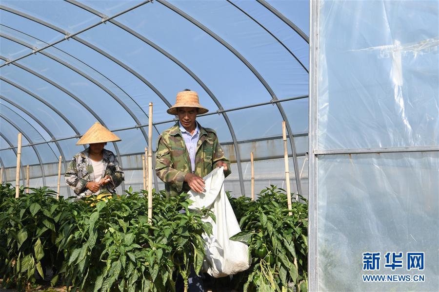 9月2日,在定西市安定區(qū)魯家溝鎮(zhèn)南川村的高標(biāo)準(zhǔn)日光溫室大棚,邵俊堂(右)和妻子在辣椒制種棚中勞作。新華社記者 范培珅 攝