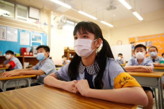 9月30日,香港鮮魚行學(xué)校的學(xué)生在上國情教育課。新華社記者 劉展威 攝