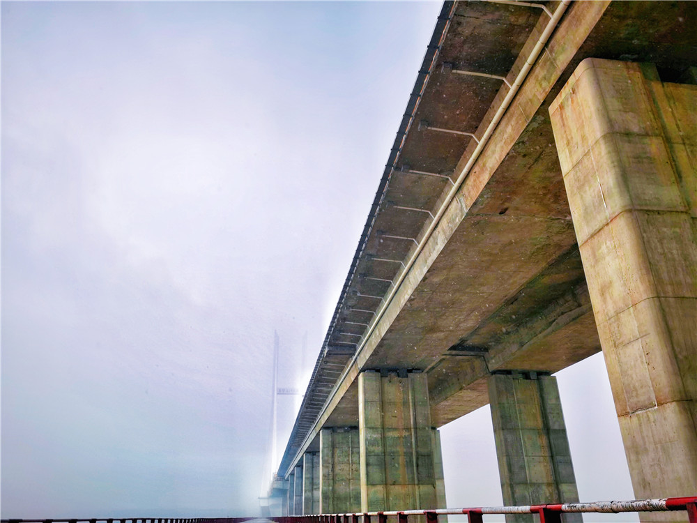 蒙蒙秋雨中,我們沿著江堤,來到長江大橋下方。在尚未拆除的施工便道上,仰望高聳入云的大橋南主塔,仿佛回到了火熱的建設(shè)工地,感受到中國人偉大的創(chuàng)造力。