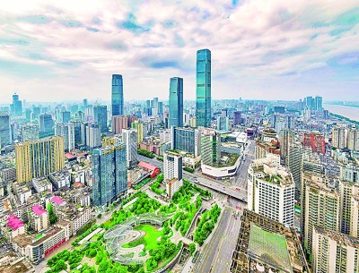 如今的五一廣場(chǎng)高樓林立、車(chē)水馬龍。光明圖片