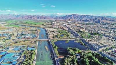 西藏日喀則市,城鎮(zhèn)面貌日新月異。圖為奔流不息的年楚河穿城而過,默默見證著這座城市的變遷。陳林、楚武干攝/光明圖片