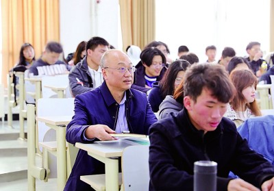 大連民族大學(xué)校領(lǐng)導(dǎo)和學(xué)生同上一堂課。資料圖片
