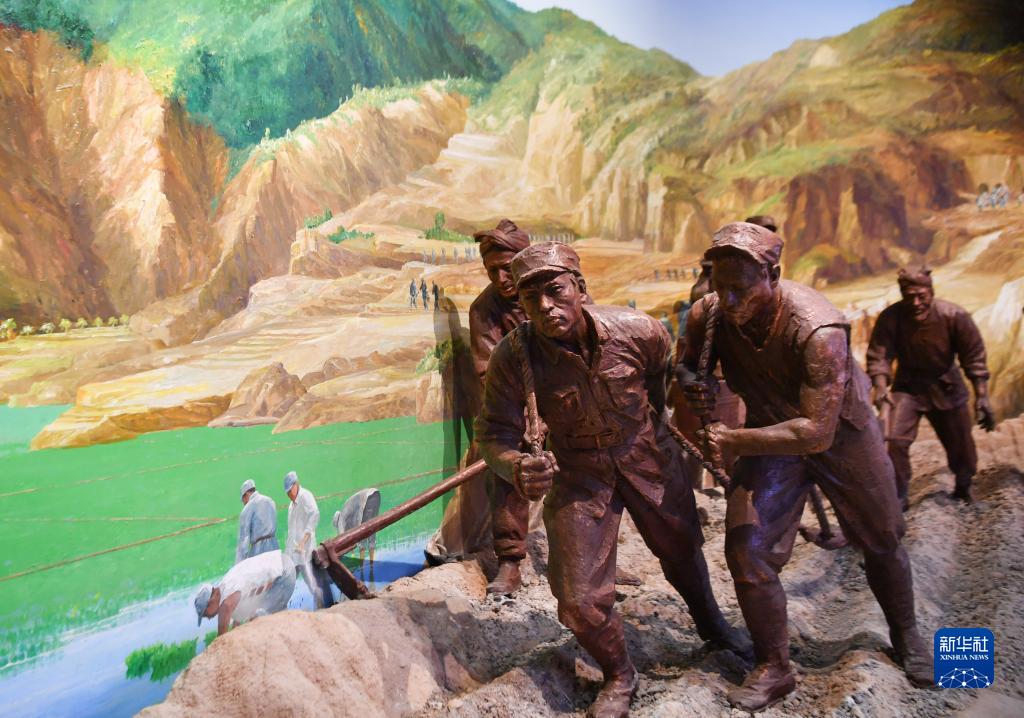 南泥灣大生產(chǎn)紀(jì)念館內(nèi)的雕塑作品(7月22日攝)。新華社記者 張博文 攝