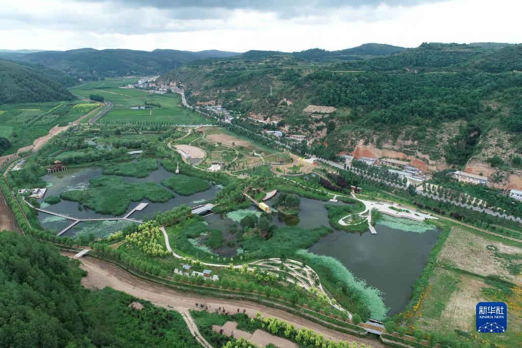 南泥灣國家濕地公園景色(7月22日攝,無人機(jī)照片)。新華社記者 張博文 攝