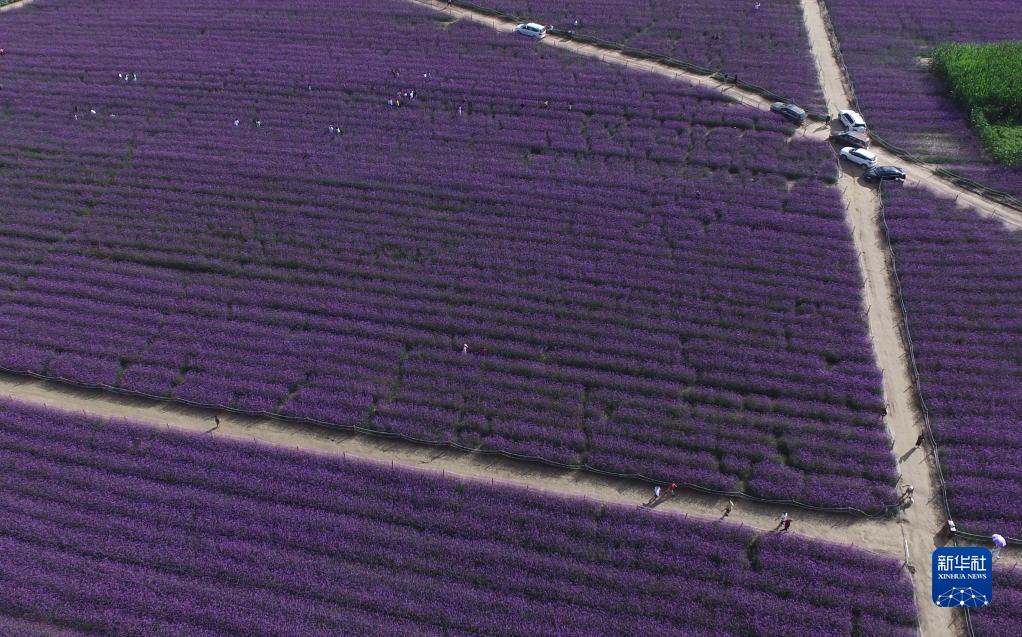 游人在延安南泥灣賞花游覽(2020年8月19日攝,無人機(jī)照片)。新華社發(fā)(祁小軍 攝)