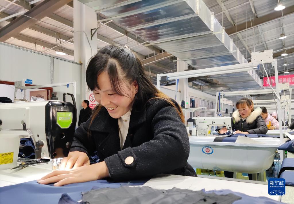 曾有過在浙江一家服裝廠工作的經(jīng)歷,32歲的搬遷群眾韓富潮如今在靖安新區(qū)辦起了制衣廠。廠房里成排的縫紉機嗒嗒作響,墻上“勤勞才能安家”的標語格外醒目。
