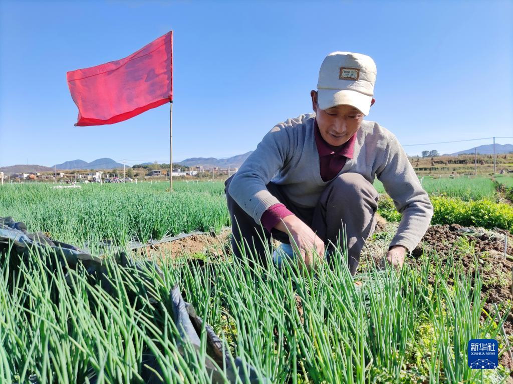 11月5日,一位搬遷群眾在卯家灣安置區(qū)某香蔥基地干活。新華社記者 林碧鋒 攝