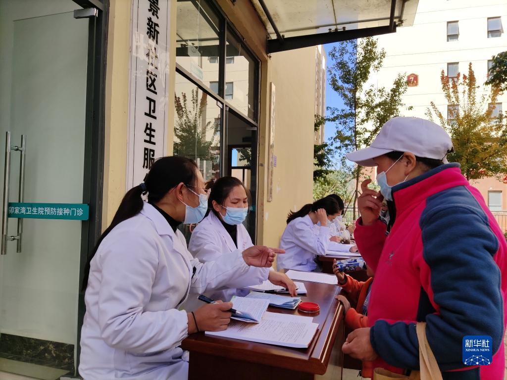 11月5日,一名搬遷群眾(右)在卯家灣安置區(qū)向醫(yī)生咨詢相關(guān)情況。新華社記者 林碧鋒 攝