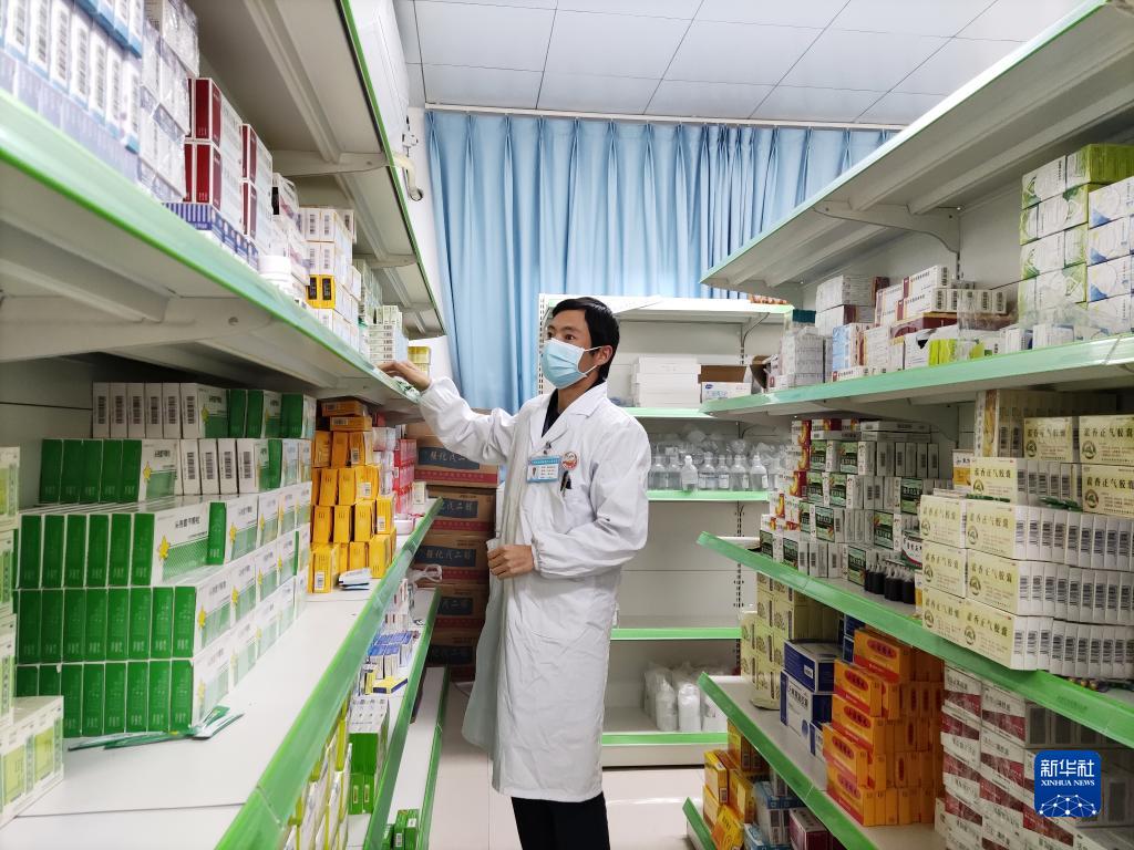 11月3日,靖安新區(qū)社區(qū)衛(wèi)生服務中心的一名醫(yī)生在藥房里拿藥。新華社記者 林碧鋒 攝