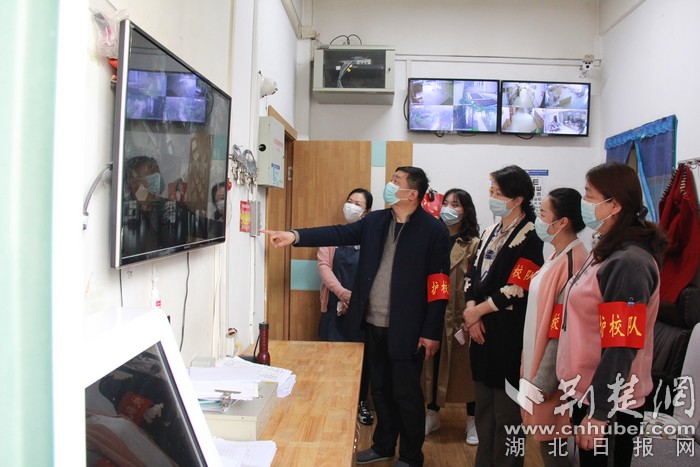 護(hù)校隊(duì)觀看學(xué)校校園監(jiān)控。通訊員供圖
