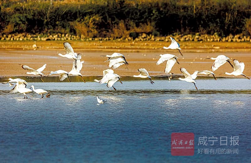 3日,咸安區(qū)斧頭湖濕地白鶴、天鵝、灰雁等一批國家珍希鳥類在此覓食越冬。
