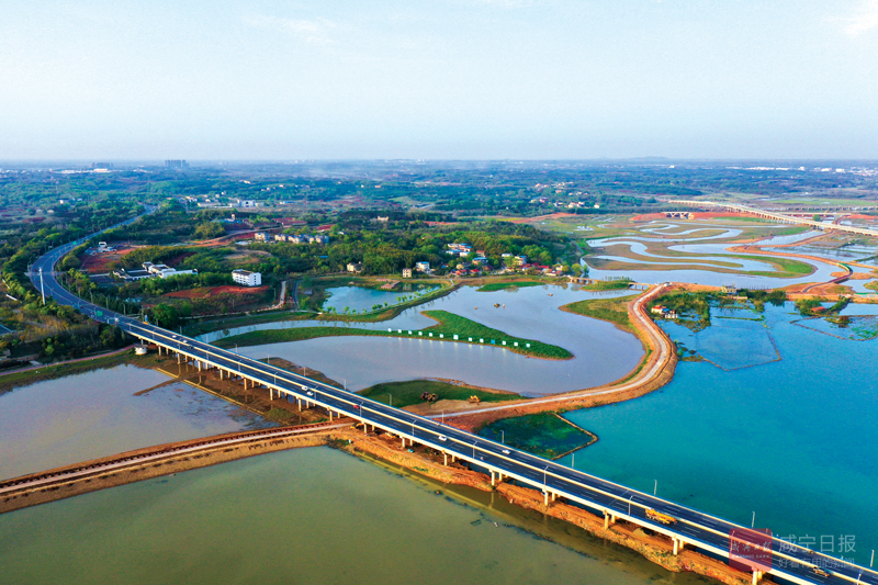 29日,記者在咸寧大洲湖生態(tài)建設示范區(qū)看到,春日暖陽下,湖水波光粼粼,草坪和綠樹連綿成片,紅色的環(huán)湖綠道在其中格外顯眼。