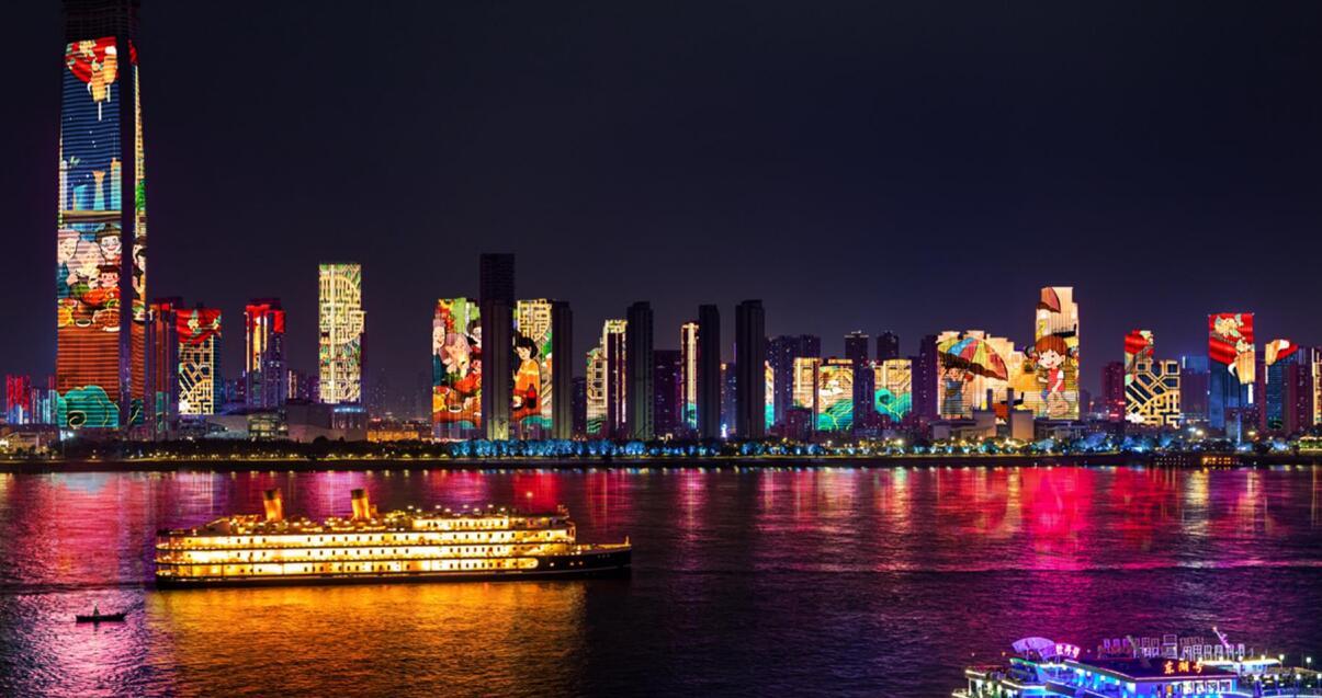 長(zhǎng)江燈光秀中秋特輯效果圖。