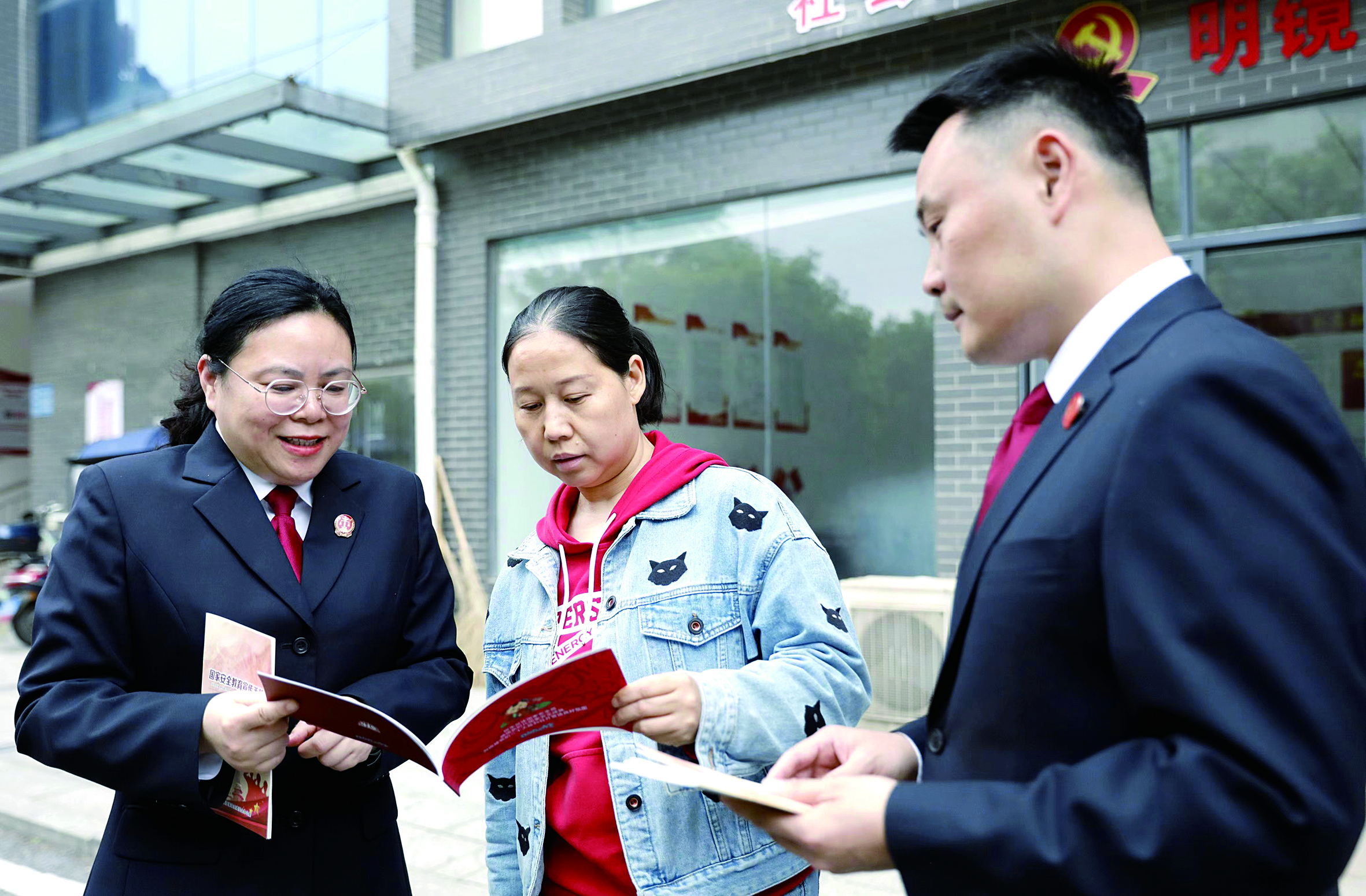 “您看一下這個(gè)宣傳冊,如果發(fā)現(xiàn)有危害國家安全的行為,您可以撥打12339舉報(bào)電話……”咸寧市中級人民法院刑二庭法官來到明鏡嘉園小區(qū)開展全民國家安全教育日宣傳活動。