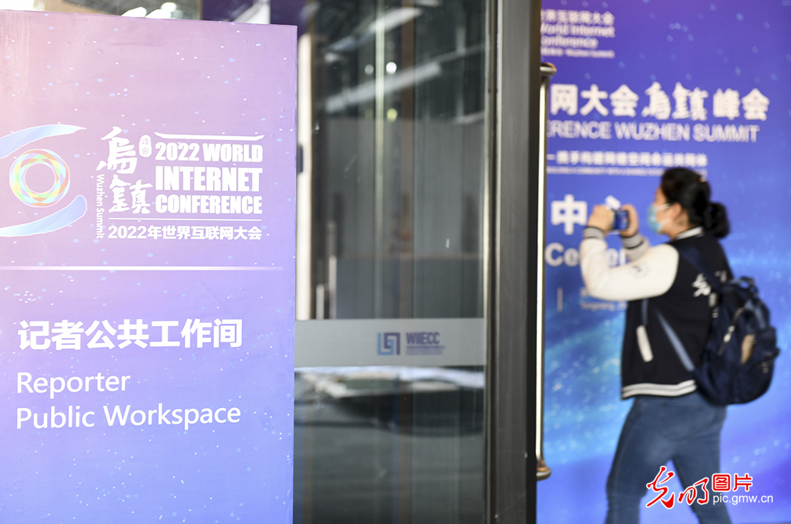 2022年11月6日,媒體記者在烏鎮(zhèn)互聯(lián)網(wǎng)國(guó)際會(huì)展中心拍攝。(光明網(wǎng)記者 潘迪攝/光明圖片)