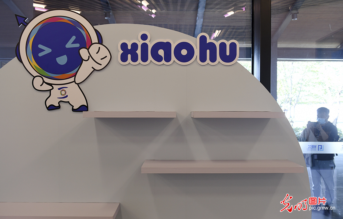 2022年11月6日,烏鎮(zhèn)互聯(lián)網(wǎng)國(guó)際會(huì)展中心一側(cè)媒體中心外,媒體記者拍攝世界互聯(lián)網(wǎng)大會(huì)烏鎮(zhèn)峰會(huì)吉祥物小互。(光明網(wǎng)記者 潘迪攝/光明圖片)