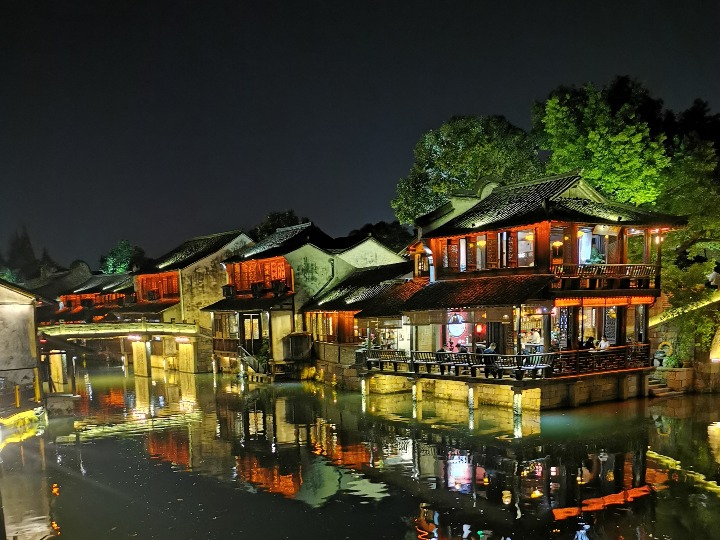 11月11日,夜晚時(shí)分的烏鎮(zhèn)。新華社記者 張馨文 攝