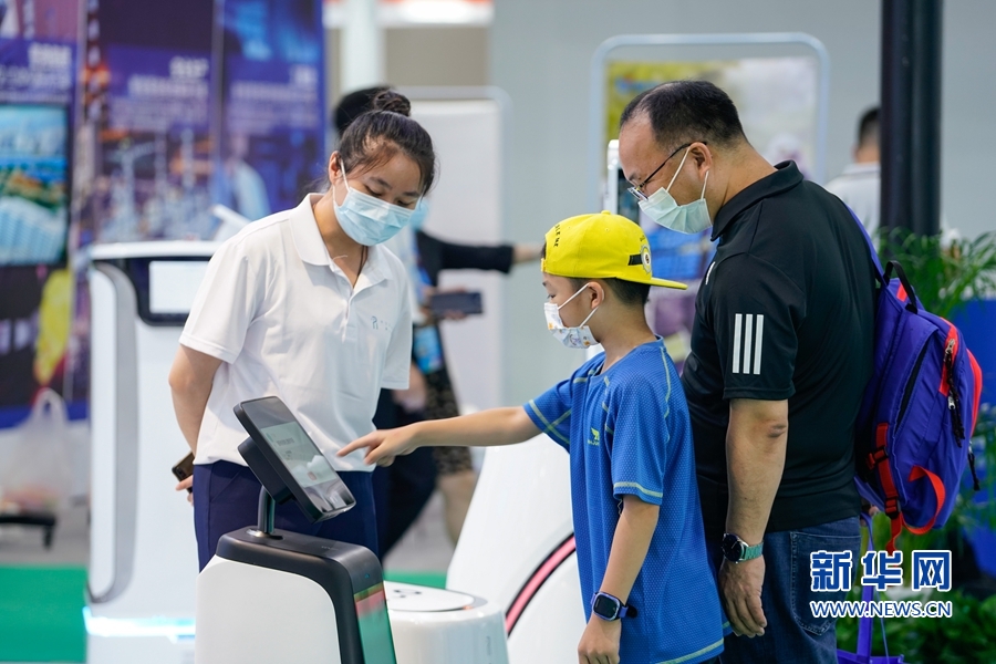 本屆數(shù)博會(huì)上,不少家長(zhǎng)帶著小朋友逛展,了解體驗(yàn)數(shù)字化產(chǎn)品?!⌒氯A網(wǎng) 蔣巧玲 攝