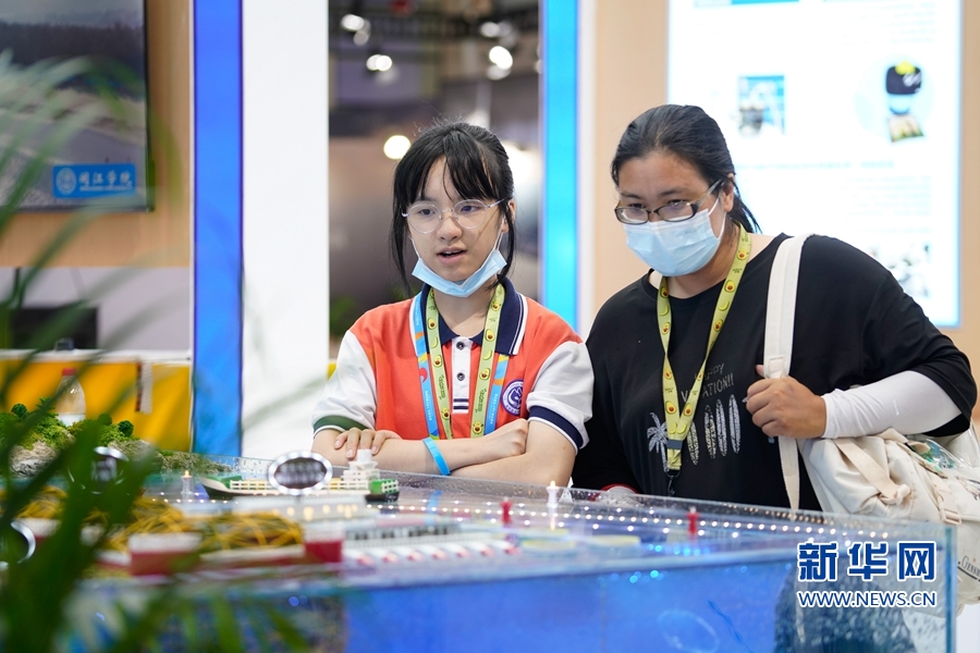 市民參觀智慧海洋相關(guān)項(xiàng)目的沙盤。 新華網(wǎng) 蔣巧玲 攝