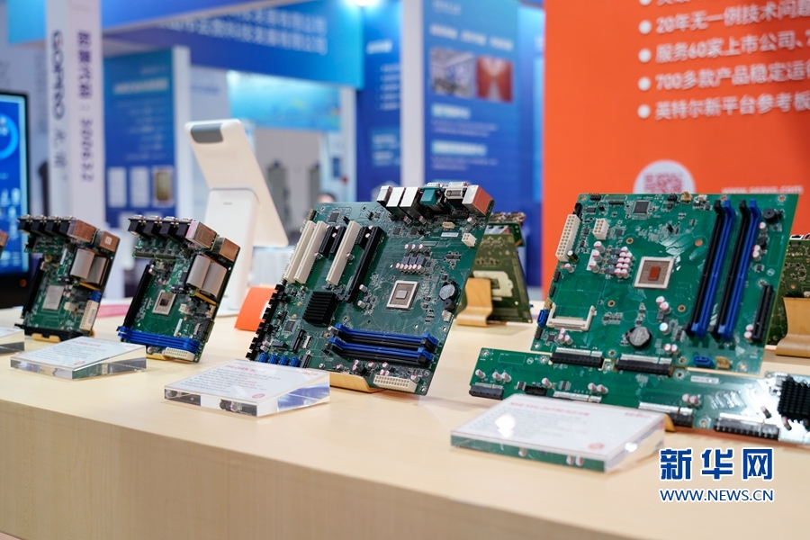 圖為數(shù)博會(huì)上展示的芯片產(chǎn)品?!⌒氯A網(wǎng) 蔣巧玲 攝