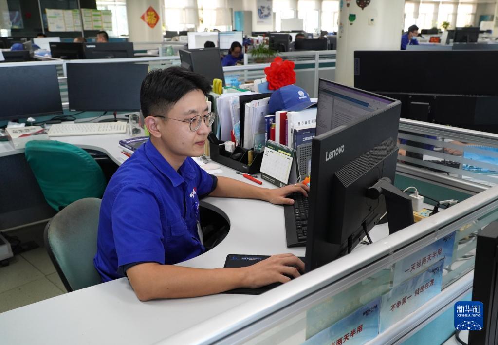 在山東省濰坊市,濰柴集團(tuán)25歲的工程師付萬鑫在工作中(9月19日攝)。新華社記者 徐速繪 攝